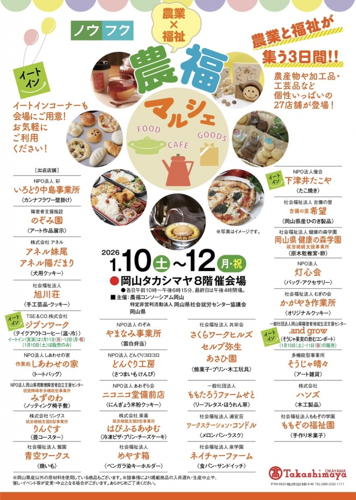 初売り 2026年1月7日 最終更新日時 : 2026年1月13日 donguri-corocoro 10日から12日まで岡山の高島屋さんで販売をさせて頂きます。 初めての事でドキドキですが、皆さんに手に取ってもらえると嬉しいです😊 土曜日は、どんぐり工房の職員も場中しております。 時間のある方はどうぞお越し下さい🙇♀️