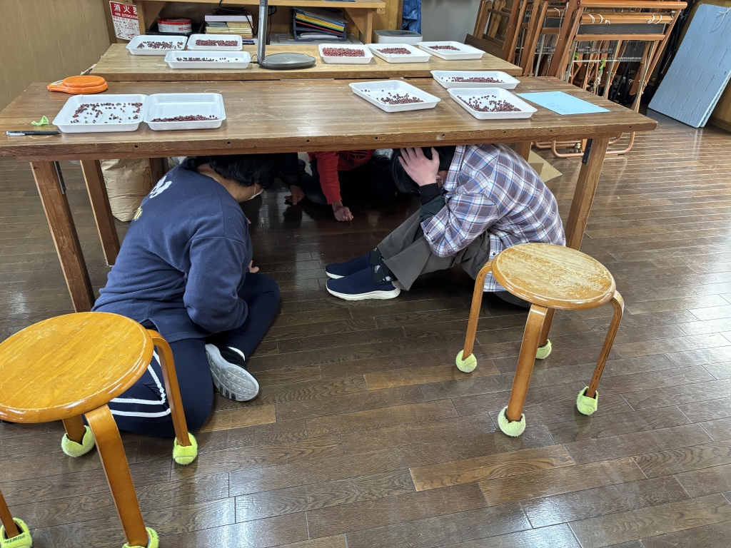 地響きと揺れ、職員の声で皆んなテーブル