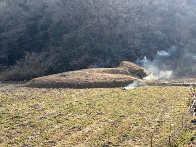 玉ねぎ消毒1回目と丘の草焼き
