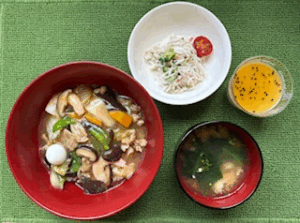 ★すき焼き ★甘酢サラダ ★みそ汁 ★ゆず酢ちらし寿司